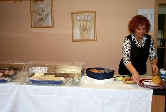 Bei uns bekommen Sie Frühstücksbüffet, Mittagessen, Nachmittagskaffee und Abendessen in Büffetform. Zusätzlich bieten wir Zwischen- und Spätmahlzeiten im Café und in den einzelnen Wohnbereichen an. An Getränken stehen Mineralwasser, Kaffee und Tee in beliebiger Menge bereit.