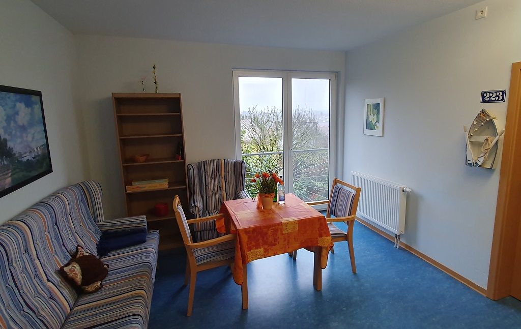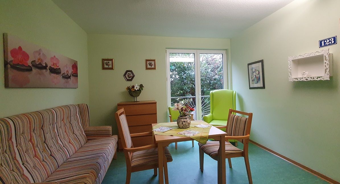 Gerne können eigene Möbelstücke mitgebracht werden. Der Wohnbereich Insel bietet den Bewohnern eine ganz besondere Entspannung: Von hier aus kann man ebenerdig den angrenzenden Garten aufsuchen. Geselligkeit ist einer der Grundpfeiler unserer Philosophie im Haus Blandine. Gerne treffen sich die Bewohner des Altenheims in Beckingen im Tagesraum zu einem gemütlichen Beisammensein. Bei Kerzenlicht (selbstverständlich elektrisch) und einem Glas Sekt oder Saft können die Bewohner außerdem ein Aroma- oder Entspannungsbad genießen.