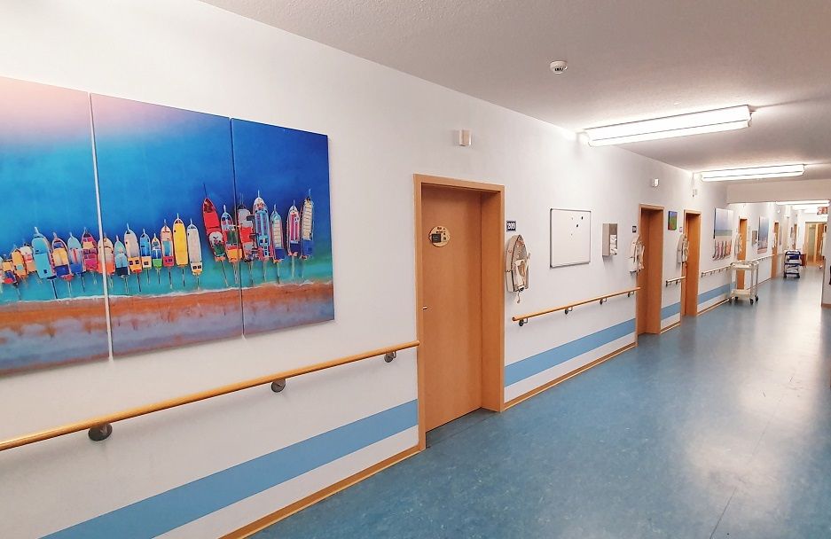 Die 89 Betten der Seniorenbetreuung Haus Blandine in Beckingen/Düppenweiler sind verteilt auf drei Wohnbereiche. Im Haus wurde ein farbliches Konzept gewählt: „Von der Erde bis zum Himmel“.