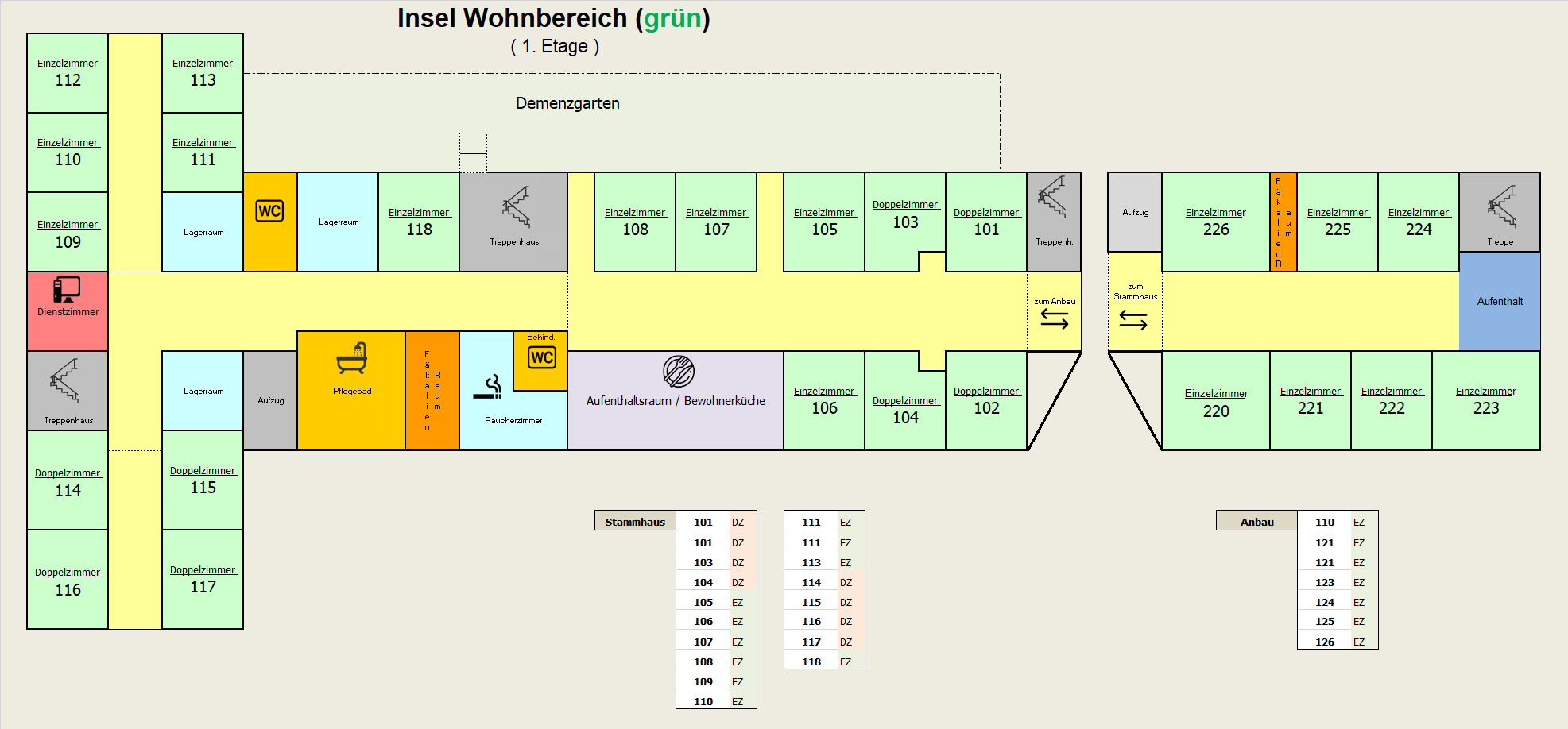 Alle Mitarbeiter werden regelmäßig weiter geschult und ein rücksichtsvoller Umgang mit den Bewohnern ist für uns selbstverständlich. Hier leben 23 Bewohner in 17 Einzelzimmern und 3 Doppelzimmern.