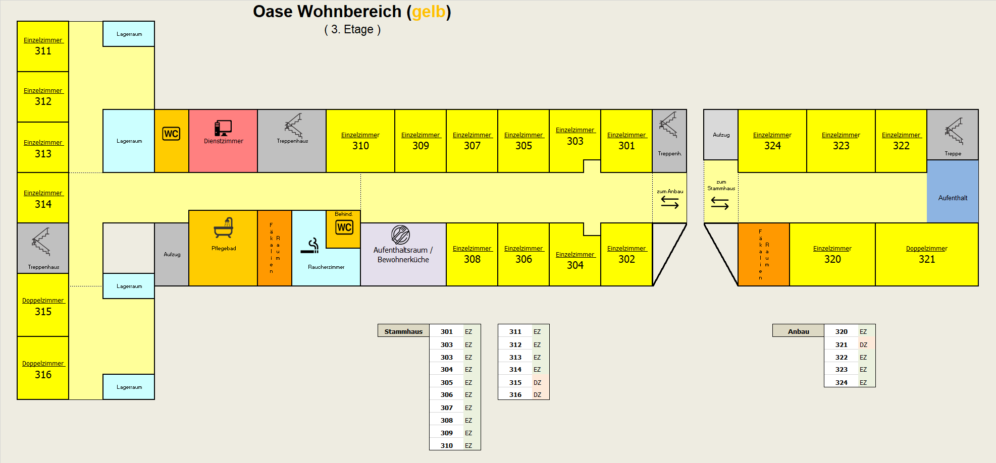 Das Team jedes Bereiches setzt sich zusammen aus Pflegefachpersonen unterschiedlichster Qualifikationen, Pflegeassistenten, Betreuungskräften, Schülern der Altenpflege und Altenpflegehilfe, sowie FSJlern und Praktikanten. Die Zimmer sind komplett möbliert und mit modernsten Pflegebetten, TV- und Telefonanschluss und einer Schwesternrufanlage ausgestattet und verfügen über ein Bad mit Dusche und WC.